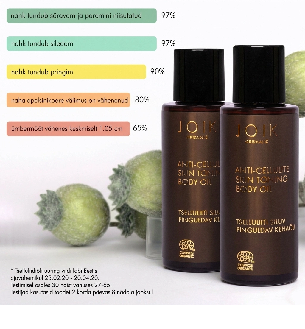JOIK Organic tselluliiti siluva õli tõhususe uuring osalejate hinnangute alusel: tulemused