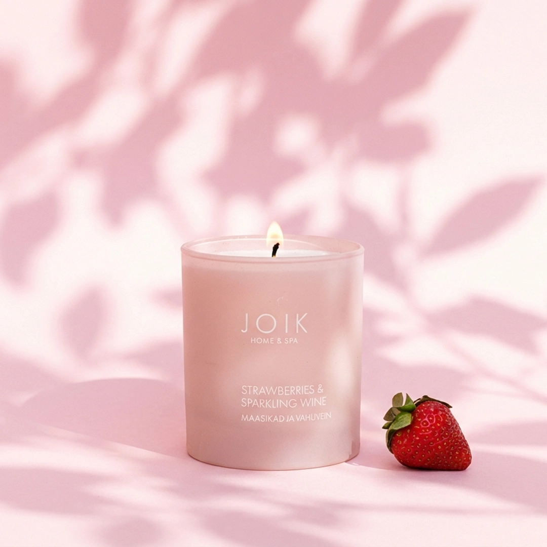 Maasikad ja vahuvein on lõhnaküünal, mille parfüüm on romantiline, luksuslik ja joovastav.