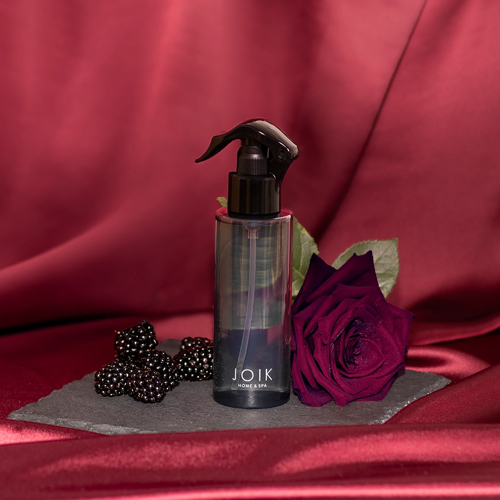 Ruumi- ja tekstiiliprei Blackberry & Rose Noir on loodud tähistama JOIK 20. sünnipäeva ning kuulub ainulaadsesse Parfumerie kollektsiooni. Tegemist on veepõhise ja alkoholivaba spreiga, mis värskendab tekstiile ja täidab ruumi elegantse aroomiga.